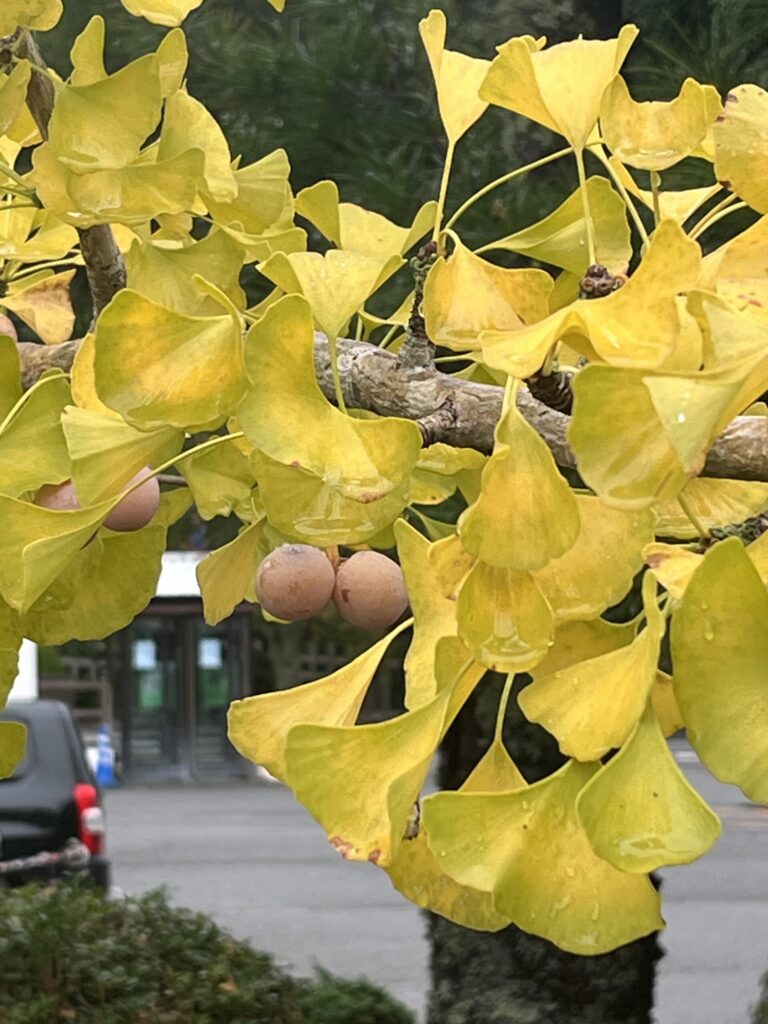 今はイチョウが黄色くなってきていますが