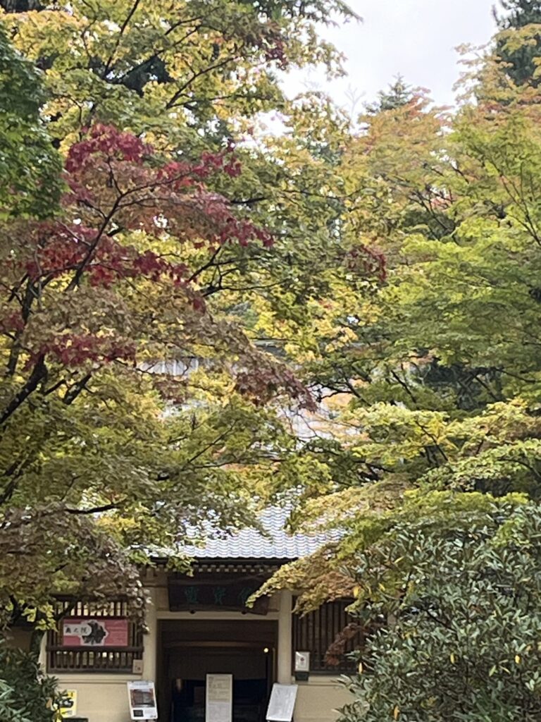 (写真は霊宝館駐車場のイチョウと紅葉です)